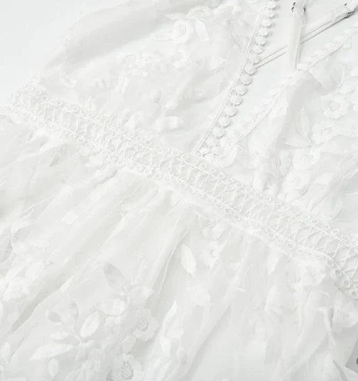 - Materiaal: Netwerkstof met bloemborduurwerk