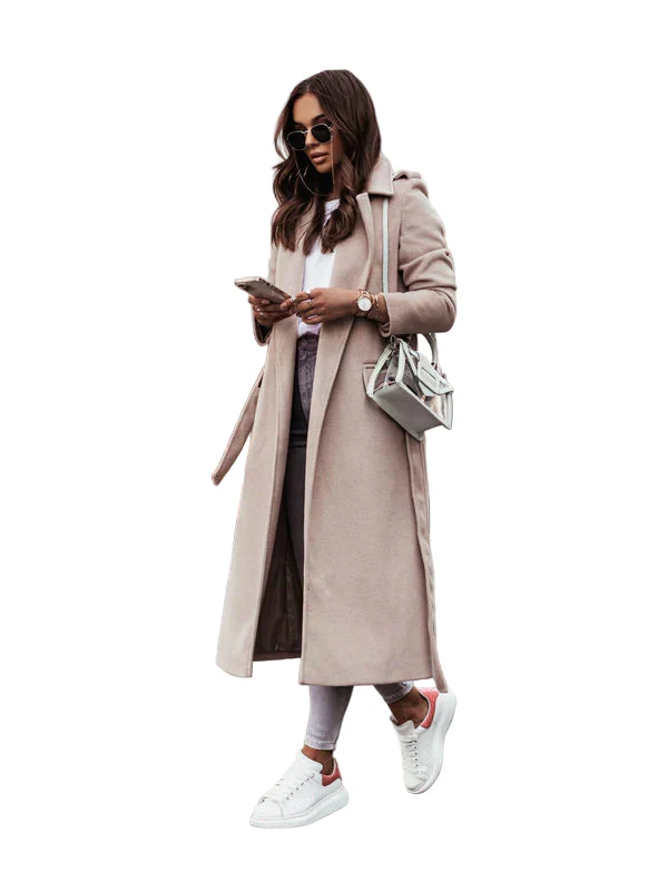 Met een chique tailleband accentueert deze jas uw silhouet en zorgt voor een flatterende pasvorm die bij elke outfit past. Of u nu kleedt voor een formeel evenement of het casual houdt voor een dagje uit, deze veelzijdige lange jas is een onmisbaar basisstuk in uw garderobe.