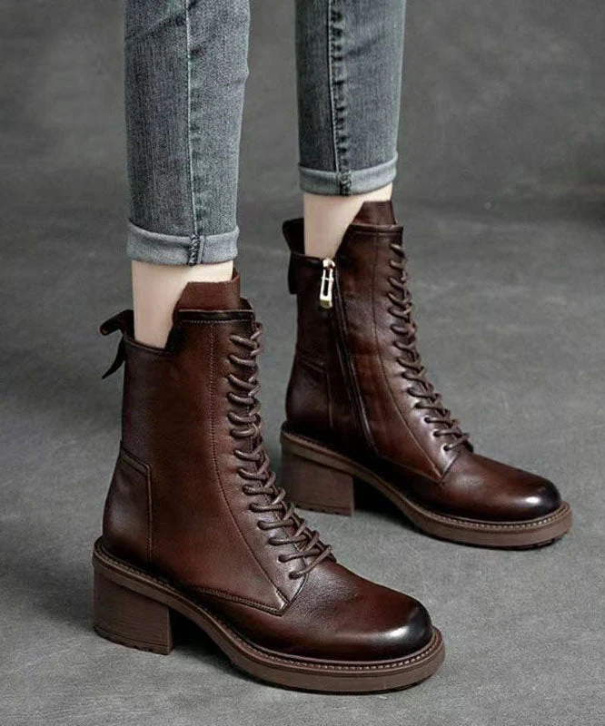 Dames Leren Laarzen met Vetersluiting en Ritssluiting