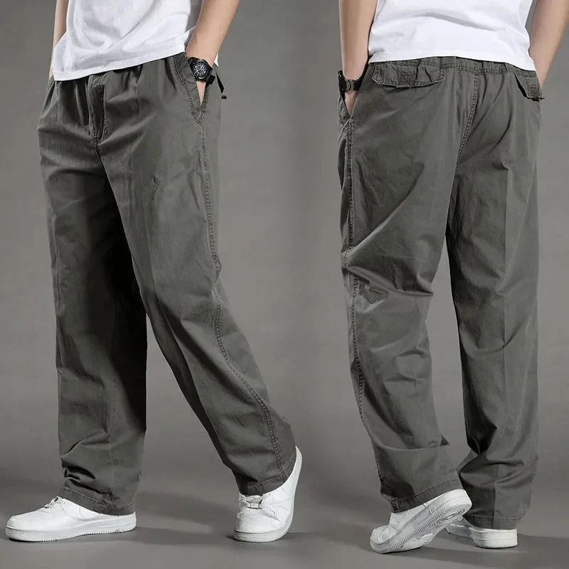 Ervaar maximaal comfort met deze ruime herenbroek die soepel om het been valt. De relaxte taille en rechte pijpen zorgen voor een moeiteloos en casual silhouet, perfect voor elke gelegenheid.