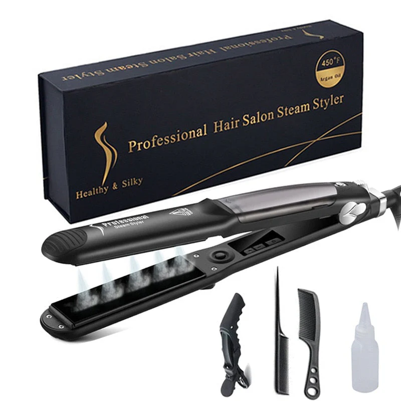 Dit revolutionaire apparaat maakt je haar steil, zijdezacht en zacht binnen enkele minuten. In tegenstelling tot traditionele stijltangen, zal de CERAMIC HAIR STEAM STRAIGHTENER zachte stoom op je haar toepassen terwijl het stijlt, wat je haar drastisch verzacht en beschermt tegen verbranding of beschadiging door hitte, terwijl de warmte precies daar blijft waar het moet zijn. Zo krijg je in een mum van tijd salon-kwaliteit resultaat!