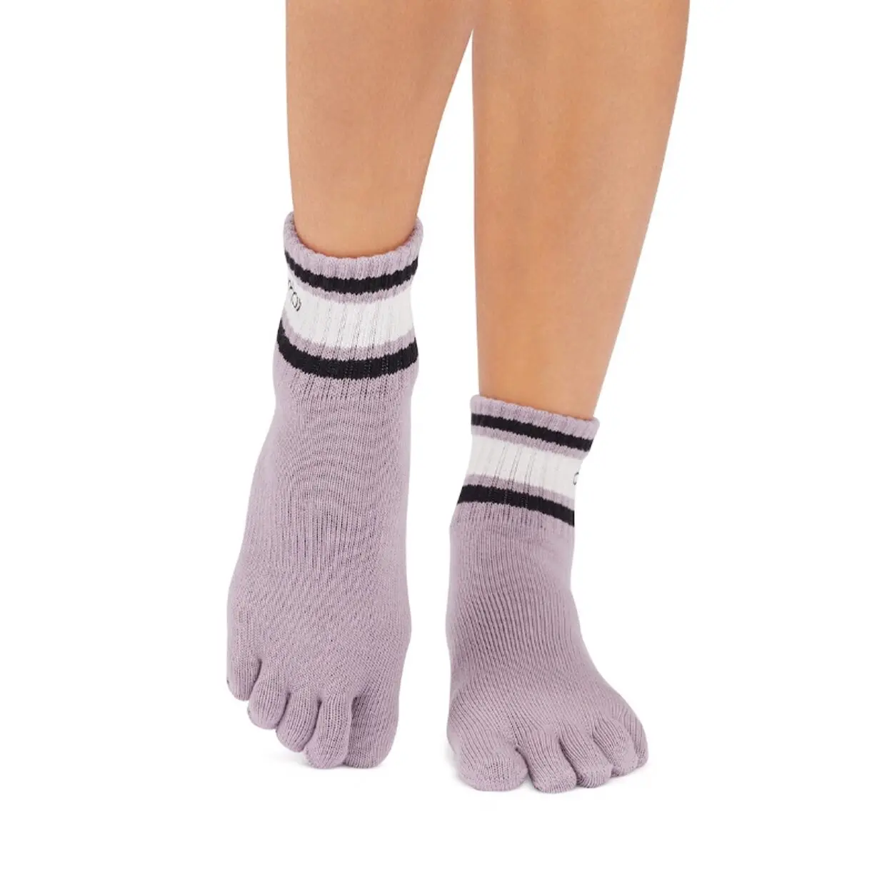 Het vijf-tenen ontwerp is een belangrijk verschil met standaard antislipsokken. Bij Halfhoge Gripsokken met tenen kan elke teen apart bewegen en licht spreiden. Dat klinkt misschien klein, maar het helpt je voeten zich natuurlijker te “grijpen” aan de ondergrond. Tijdens yoga kan dat prettig zijn in houdingen waar balans centraal staat, zoals krijger-variaties of een tree pose. In pilates en barre ondersteunt het juist de verfijnde controle bij kleine, herhalende bewegingen en stabilisatiewerk.