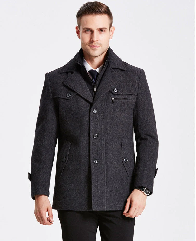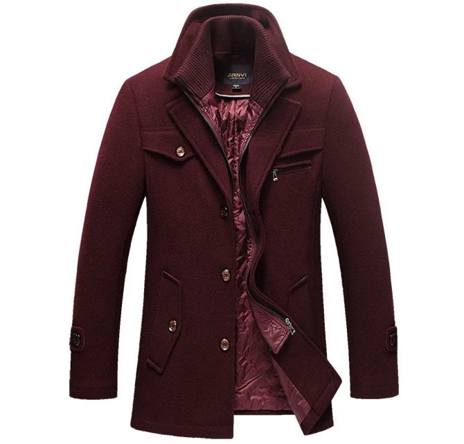 Met een aangepaste pasvorm zorgt deze jas voor een verfijnd silhouet. Het ontwerp is ideaal voor het winterseizoen, met een dikke stof die extra warmte biedt op koude dagen. De traditionele huls-uiteinden voegen een klassiek element toe aan de look.