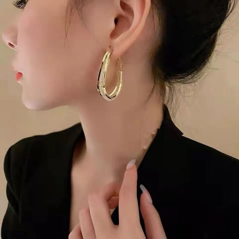 Ovale Glimmende Hoepel Oorbellen