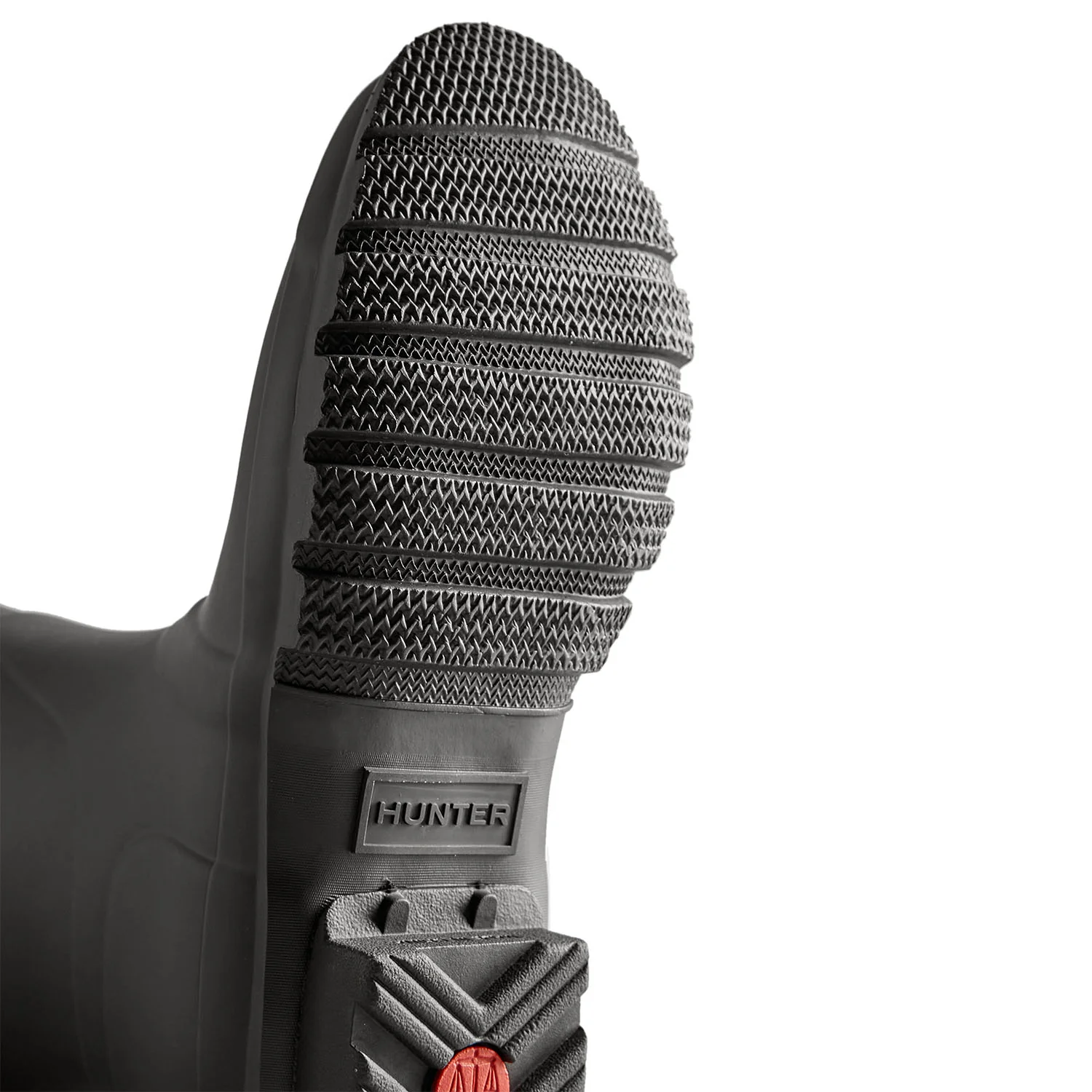Gemaakt van FSC®-gecertificeerd natuurrubber uit bossen die onafhankelijk worden gecontroleerd volgens de normen van de Forest Stewardship Council®. De Hunter Original Short Boot is bij deze variant voorzien van het iconische driekleurige logo op een band aan de achterzijde. Deze korte regenlaars van natuurrubber is perfect voor natte weersomstandigheden en is een kortere versie van de iconische Hunter Original Tall Boot. Elke laars wordt met de hand vervaardigd en in een tijdsbestek van drie dagen geassembleerd voordat hij wordt gevulkaniseerd voor superieure bescherming. Het Hunter Original loopvlakpatroon en de comfortabele voering van gerecycled polyester maken het ontwerp compleet.