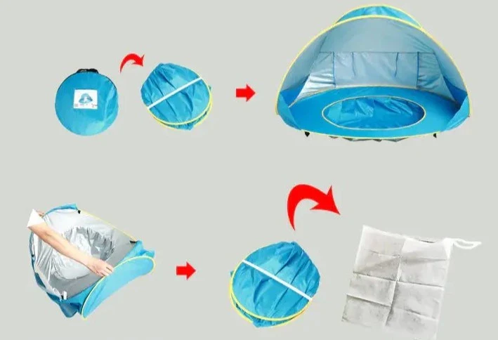 Het ingebouwde zwembad zorgt voor een verfrissende plons water op warme zomerdagen, waardoor het een perfect buitenspeelgoed is voor uw kind. Deze draagbare speelhuistent is gemakkelijk op te zetten en af te breken, waardoor het een ideale keuze is voor elk stranduitstapje of buitenavontuur met uw baby.